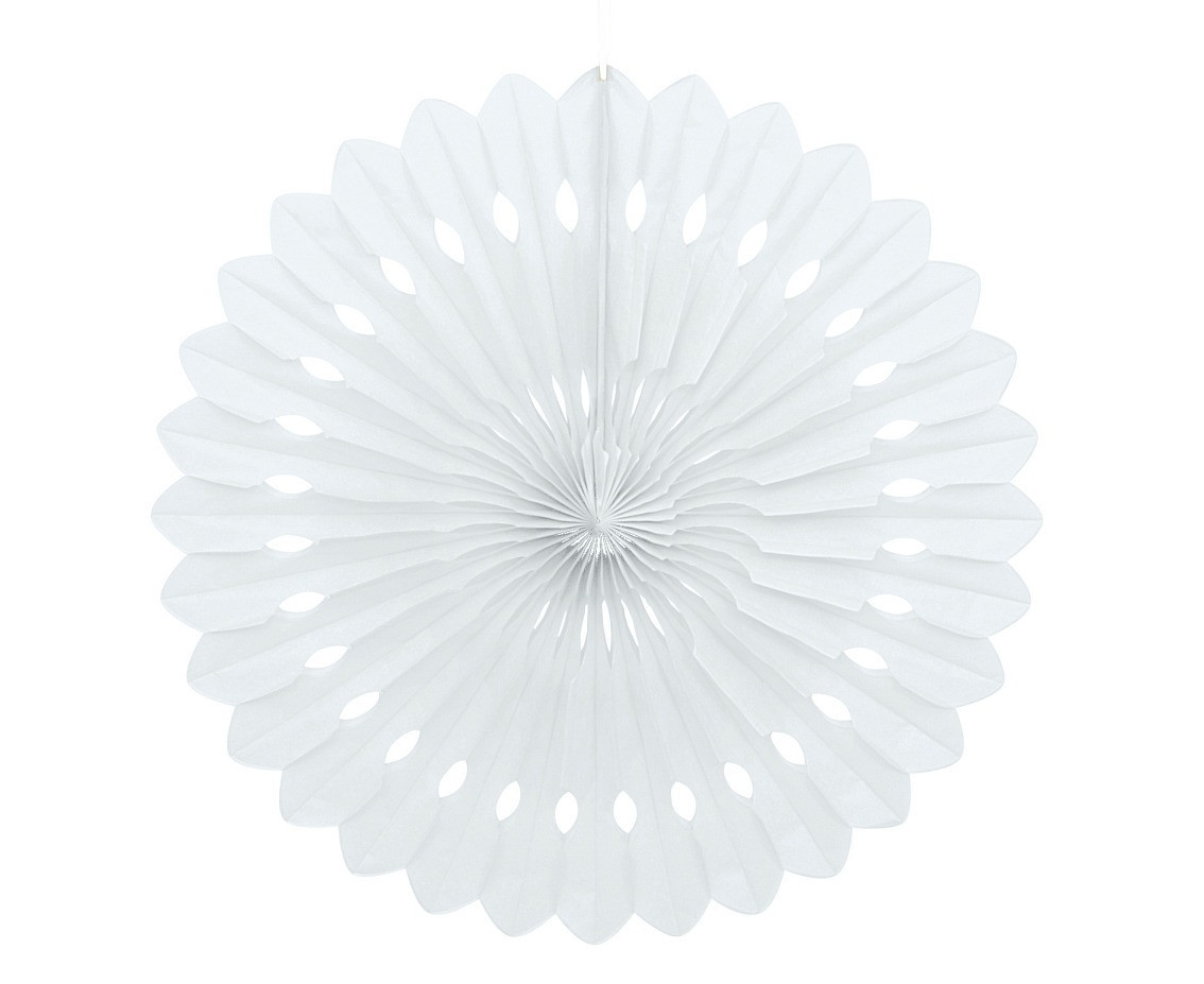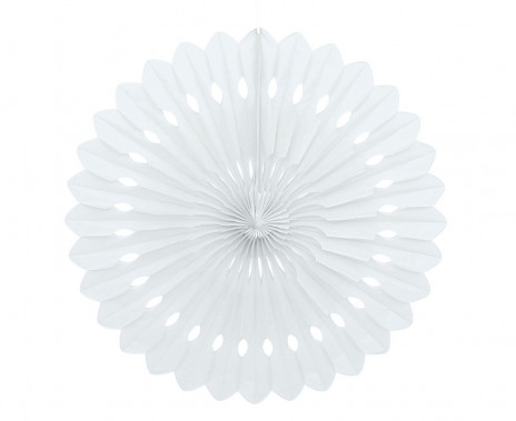 Flor de papel de cor branca, de 40 cm de diâmetro.