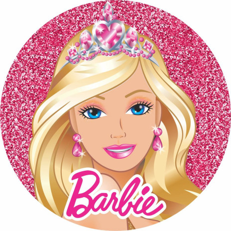 Disco de hóstia, também conhecido como obreia ou papel de arroz para decoração de bolo de aniversário com tema Barbie e cerca de 20cm de diâmetro impressos em folha A4.