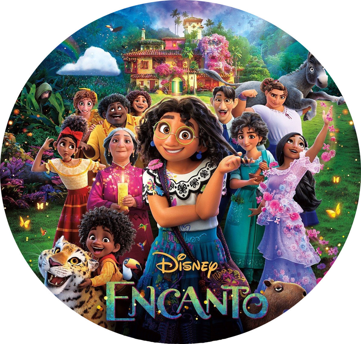 Disco de obreia/hóstia para decoração de bolo de aniversário com o tema da incrivel familia da Mirabel e do filme Encanto. Sem glúten. Também disponivel em disco de hóstia ou obreia.