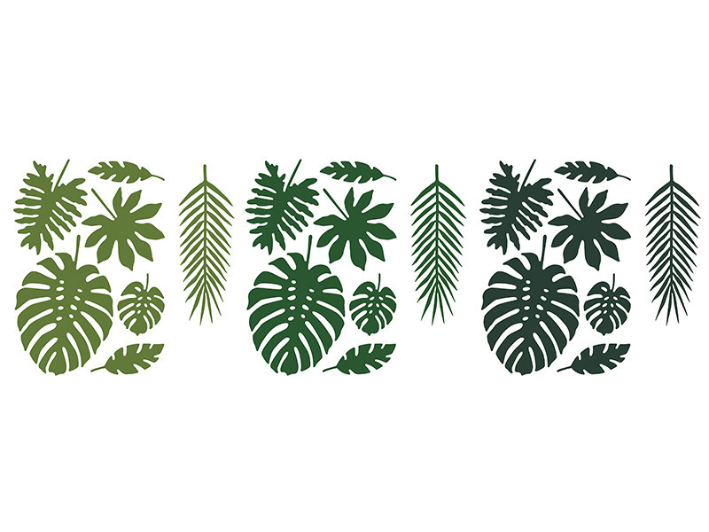 Decoração de folhas verdes em papel com o tema Aloha, Havai. Cada conjunto contém 7 formas diferentes de folhas, cada forma em 3 tons diferentes de verde. Indicado para festas de verão, festas havaianas, festas da selva, entre outras.