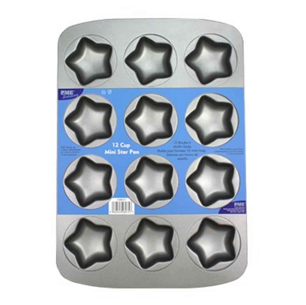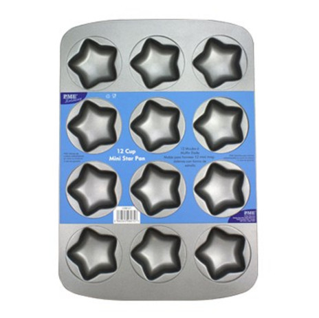 Forma anti aderente para fazer 12 cupcakes, madalenas, queques em forma de estrelas.