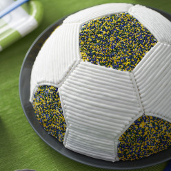 Forma 3D em alumínio para bolo no formato de bola de futebol de tamanho aproximado: 22,2cm X 8,9cm