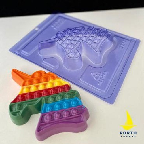 Molde Acetato de Chocolate Especial 3 Partes - Unicórnio Pop It Fidget 3D. Faça o seu chocolate com o seu desenho preferido, com a ajuda deste molde especial de 3 partes.
