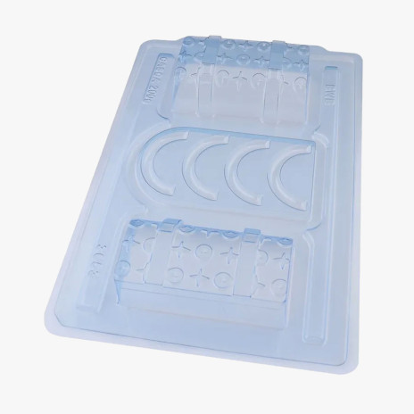 Molde acetato (3 partes), ideal para produção de chocolates com muito mais praticidade e precisão.