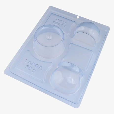 Forma especial com silicone (3 partes), ideal para produção de chocolates com muito mais praticidade e precisão.