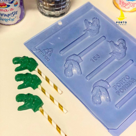 Molde Acetato - Dinossauros. Com estes moldes, poderá fazer várias decorações comestíveis em chocolate para os seus doces, como bolos de aniversário. Poderá fazer um chupa/pirulito único e especial com este molde.
