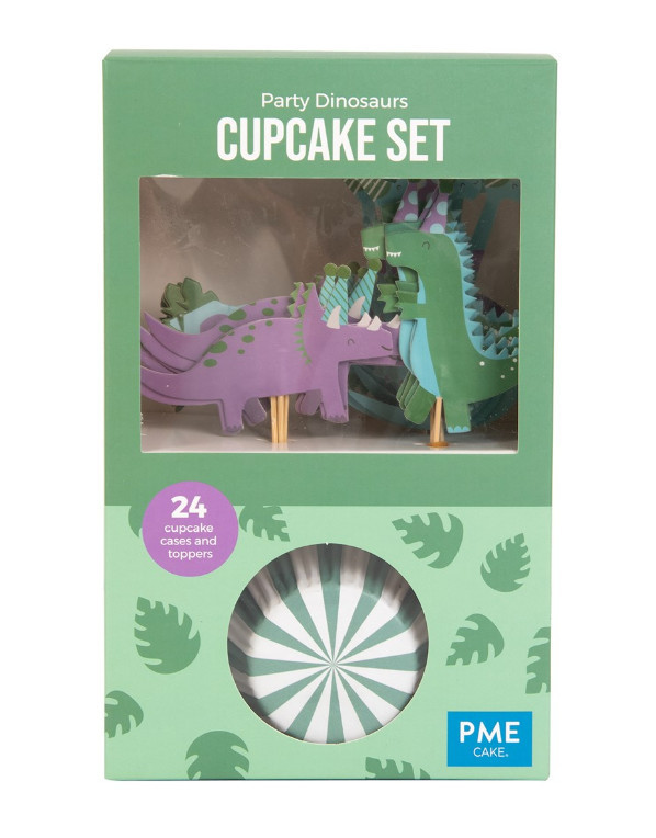 Este conjunto de formas e toppers coloridos e divertidos dos dinossauros podem ser usados de várias maneiras para festas, ocasiões especiais em cupcakes ou qualquer tipo de bolo.