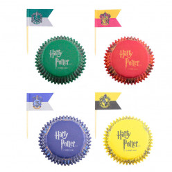 Pack de 24 formas de papel para cupcakes, mais 24 toppers para decoração da tua festa de aniversário do Harry Potter.