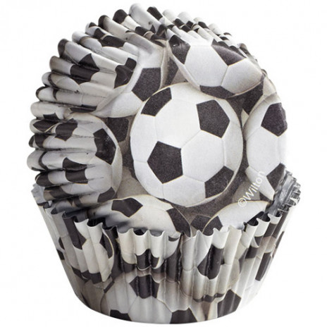 Pack de 36 forminhas de papel alusivo ao tema Futebol para bolinhos cup cake da marca Wilton, com medidas aproximadas de 5cm