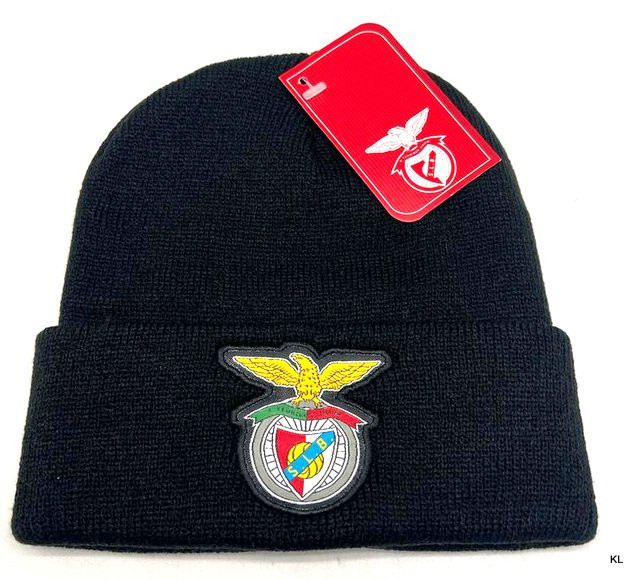 Gorro preto Sport Lisboa e Benfica fabricado em Portugal. O logotipo é um emblema cozido no gorro, não é uma estampagem.
