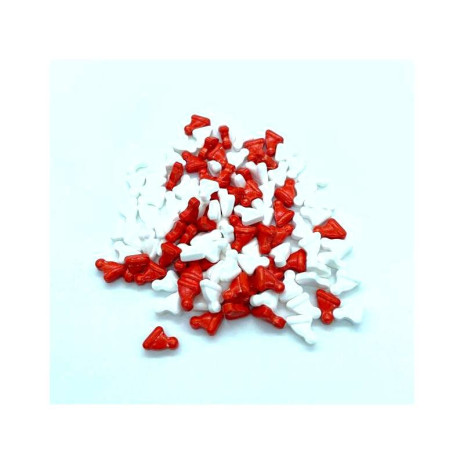 Decorações de açúcar com gorros de pai natal em vermelho e branco.Peso: 90gr
