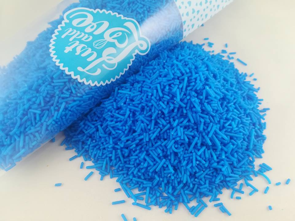 Embalagem de 250g com granulado em tom de azul, para decoração de todo o tipo de bolos