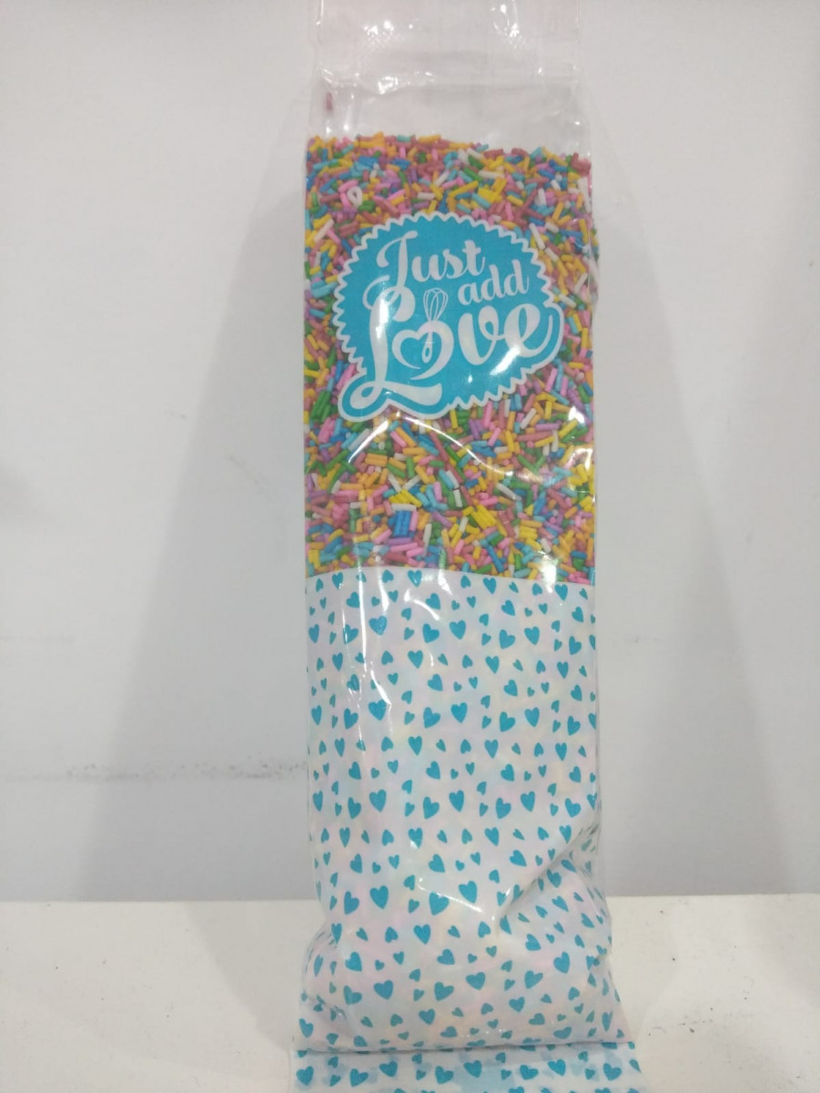 Embalagem de 250g com granulado com mistura de cores, para decoração de todo o tipo de bolos