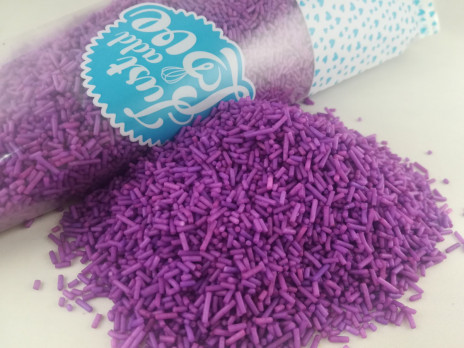 Embalagem de 250g com granulado em tom de lilás para decoração de todo o tipo de bolos.