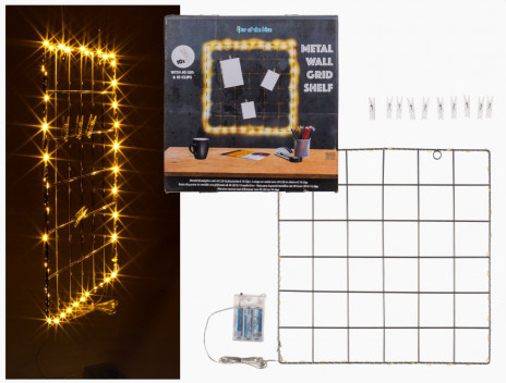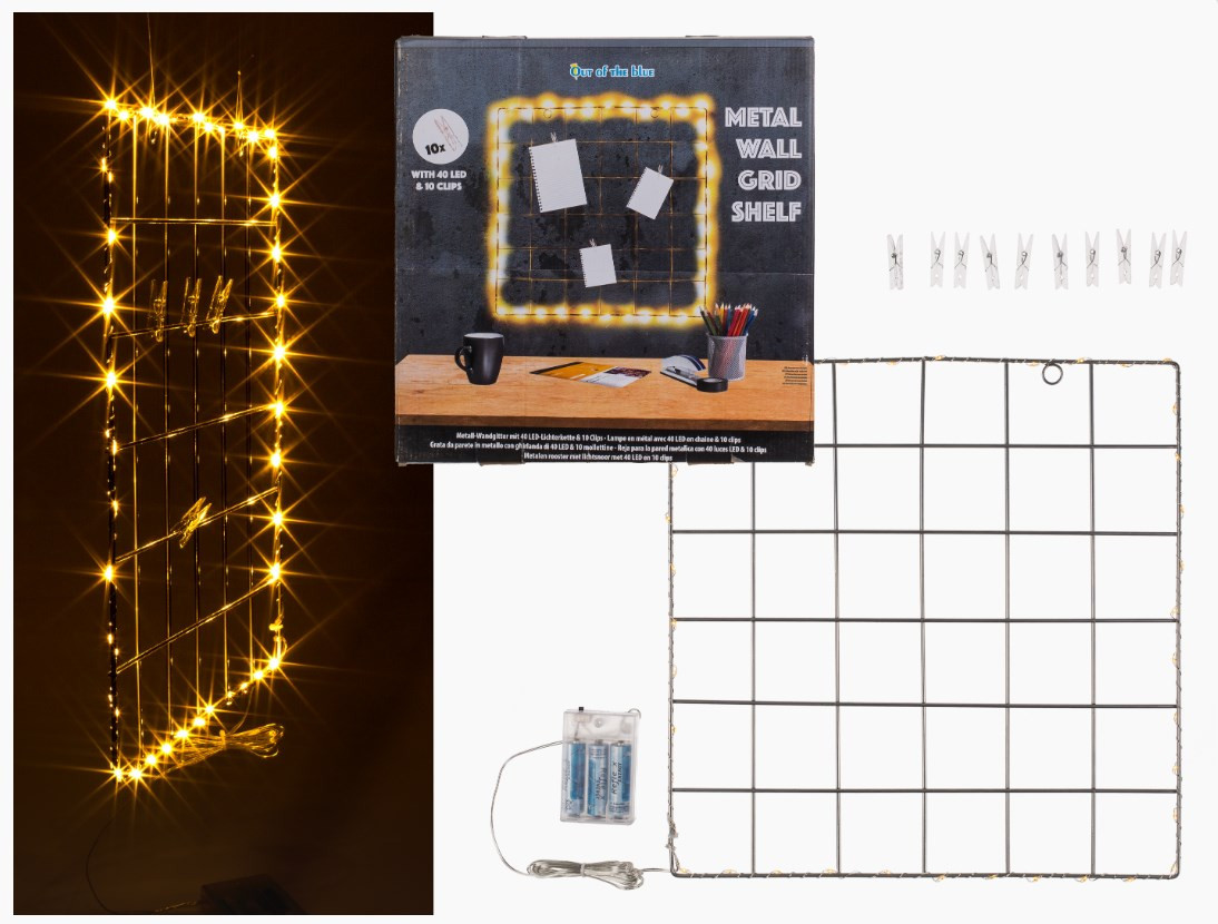 Para decoração da sua casa ou de qualquer festa ou evento, esta grelha metálica com 40 luzes led e 10 molas pequeninas.