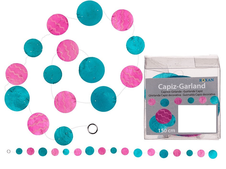 Uma linda Grinalda em tons de azul turquesa e rosa, com 150cm