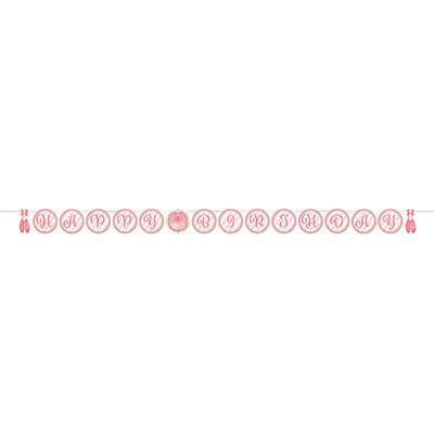 Grinalda de cartão para festa de aniversário com tema Ballet ou Bailarina. Inclui uma grinalda com letras HAPPY BIRTHDAY e motivos Ballet. Esta grinal da da marca Creative Converting tem 3,33m de comprimento e 15,2cm de altura.