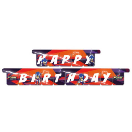 Faixa decorativa ou grinalda articulada do Sonic Prime para decoração da tua festa de aniversário com as letras que compõem a inscrição "Happy Birthday".
