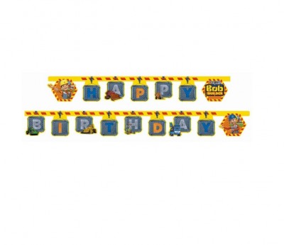 Faixa decorativa do Bob Construtor com a inscrição «Happy Birthday» para decorares a tua super festa de anos.Comprimento: 2 metros