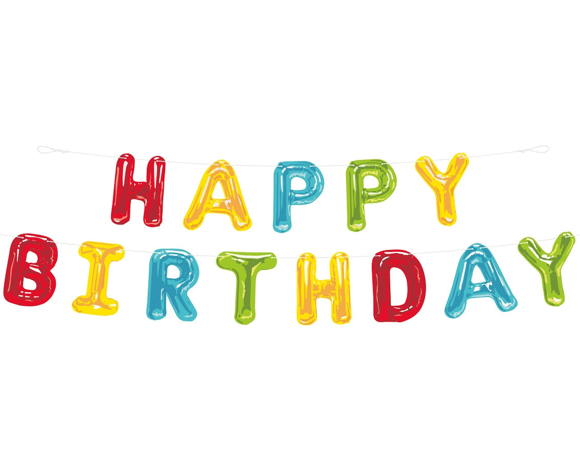 Banner em papel Happy Birthday, para decorares a tua festa de aniversário com várias cores com cerca de 2.74 metros.