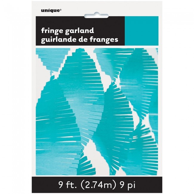 A grinalda de papel de tecido mede 2,74 m de comprimento x 15 cm de largura.