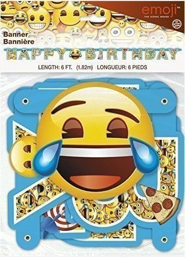 Grinalda para decoração das festas de aniversário com o tema Emojis com a inscrição «Happy Birthday».Medidas aproximadas: 2,30 mt