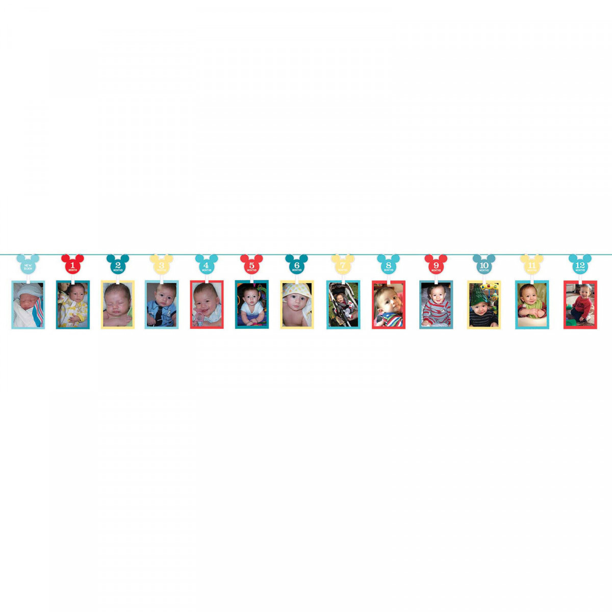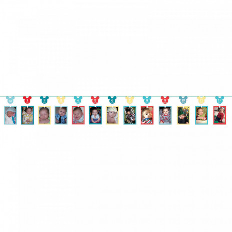 Grinalda para colocar fotos do seu bebé desde o nascimento até ao primeiro aninho. Pode colocar 13 fotos e assim será uma forma decorativa de exibir o primeiro aninho do seu bebé na festa de aniversário.