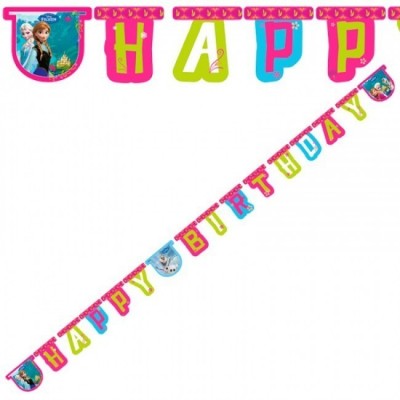 Grinalda com a inscrição \"Happy Birthday\" e imagens das irmãs Elsa e Anna e também do Olaf do filme Disney Frozen. Comprimento: 2,15m. Altura: 15cm.