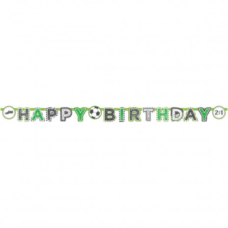 Faixa banner em cartão de Futebol com a inscrição "Happy Birthday". Decora a tua festa de aniversário com esta grinalda preparada com atilhos.