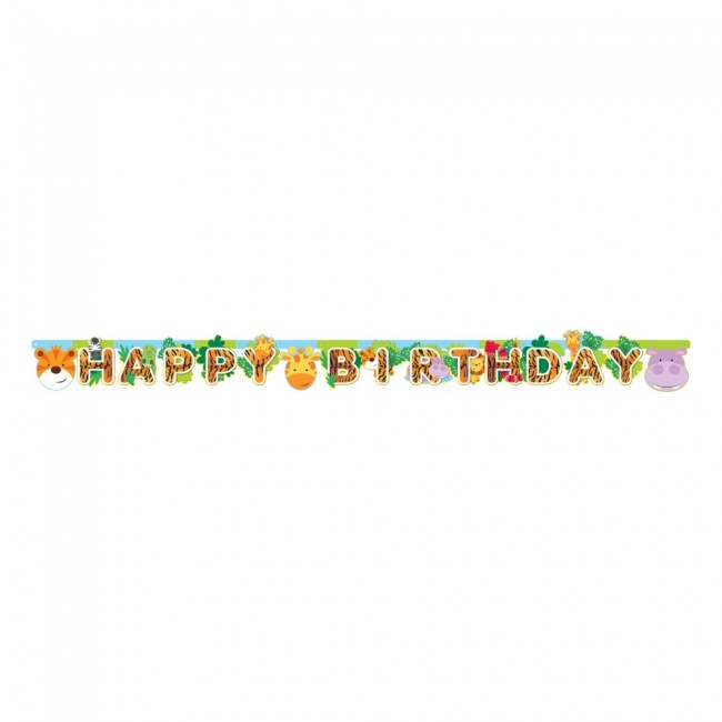 Grinalda Happy Birthday Animais da Selva com 170cm.