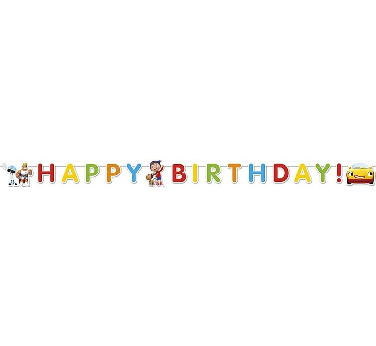 Grinalda para tua festa de aniversário do Noddy, com as palavras Happy Birthday e imagens de algumas personagens da série.