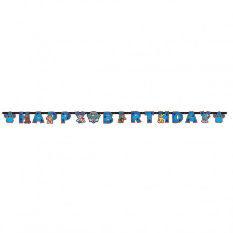 Faixa dos Paw Patrol com a inscrição «Happy Birthday» e 2,4 metros de comprimento.Decora a tua festa de aniversário com esta grinalda preparada com atilhos.