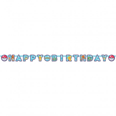 Para decoração da tua festa de aniversário não pode faltar esta bonita faixa de Happy Birthday dos Pokémon com as medidas 218x12cm.