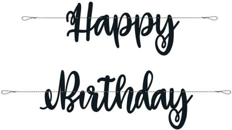 Faixa banner com a inscrição Happy Birthday em preto com cerca de 2.13m de comprimento. Ideal para decorar qualquer festa de aniversário.