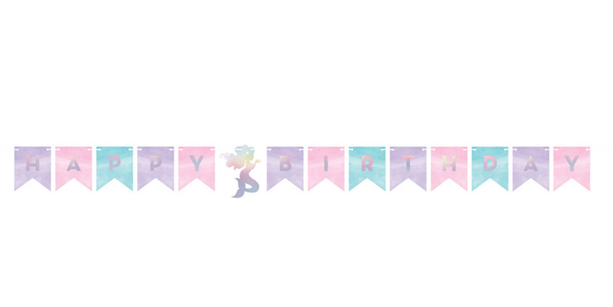 Para decoração da tua festa de aniversário não pode faltar esta bonita faixa de Happy Birthday da Sereia Iridescente com as medidas 163x152cm.