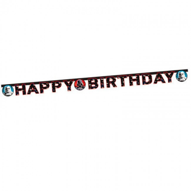 Grinalda com inscrição Happy Birthday para a decoração das festas de aniversário com o tema Star Wars