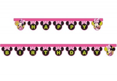 Faixa decorativa da Minnie Mouse com a inscrição «Happy Birthday» para decorares a tua super festa de anos.Comprimento: 2 metros