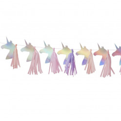 Deixe a magia encher a sua festa com o nosso 'Unicorn Tassel Garland' de folha iridescente.