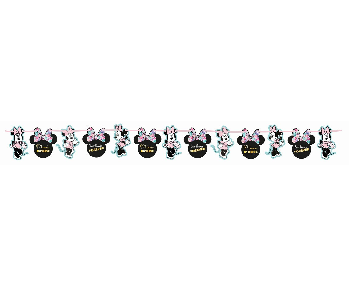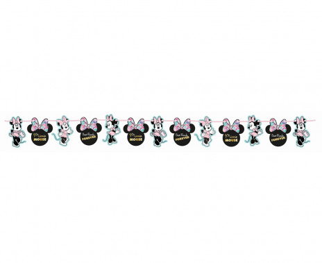 Faixa banner da Minnie, coleção Party Gem com aproximadamente 2metros, com fita para pendurar. Pode colocar os cartões da grinalda da maneira que pretender.