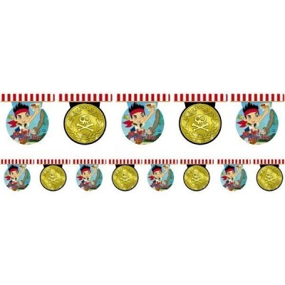 Grinalda para festa temática ou de aniversário do Pirata Jake com bandeirolas individuais em plástico.