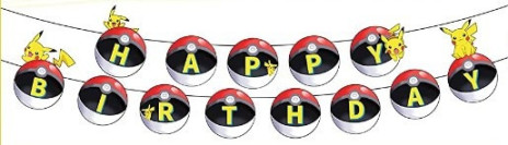 Faixa em cartão do Pokémon com a inscrição "Happy Birthday". Decora a tua festa de aniversário com esta grinalda preparada com atilhos.