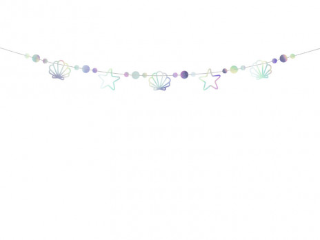 Para decoração da sua festa de aniversário não pode faltar esta bonita faixa iridescente com o tema das sereias.