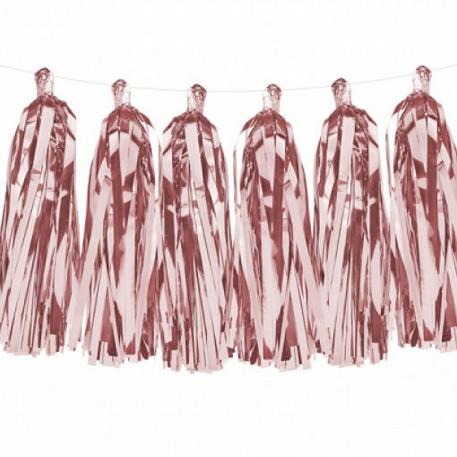 Grinalda para festas ou eventos em rose gold com cerca de 1.5m. Com todos os elementos, 12 "pompons" e fita com cerca de 2m.