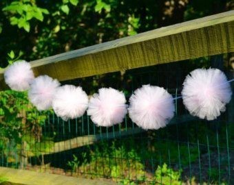 Grinalda Pom-Pom em tule branco de 2,13m para decoração de festas e eventos