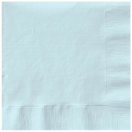 Pack de 20 guardanapos de papel folha dupla na cor azul clara pastel para decorar a sua mesa. Dimensões: 33x33cm.