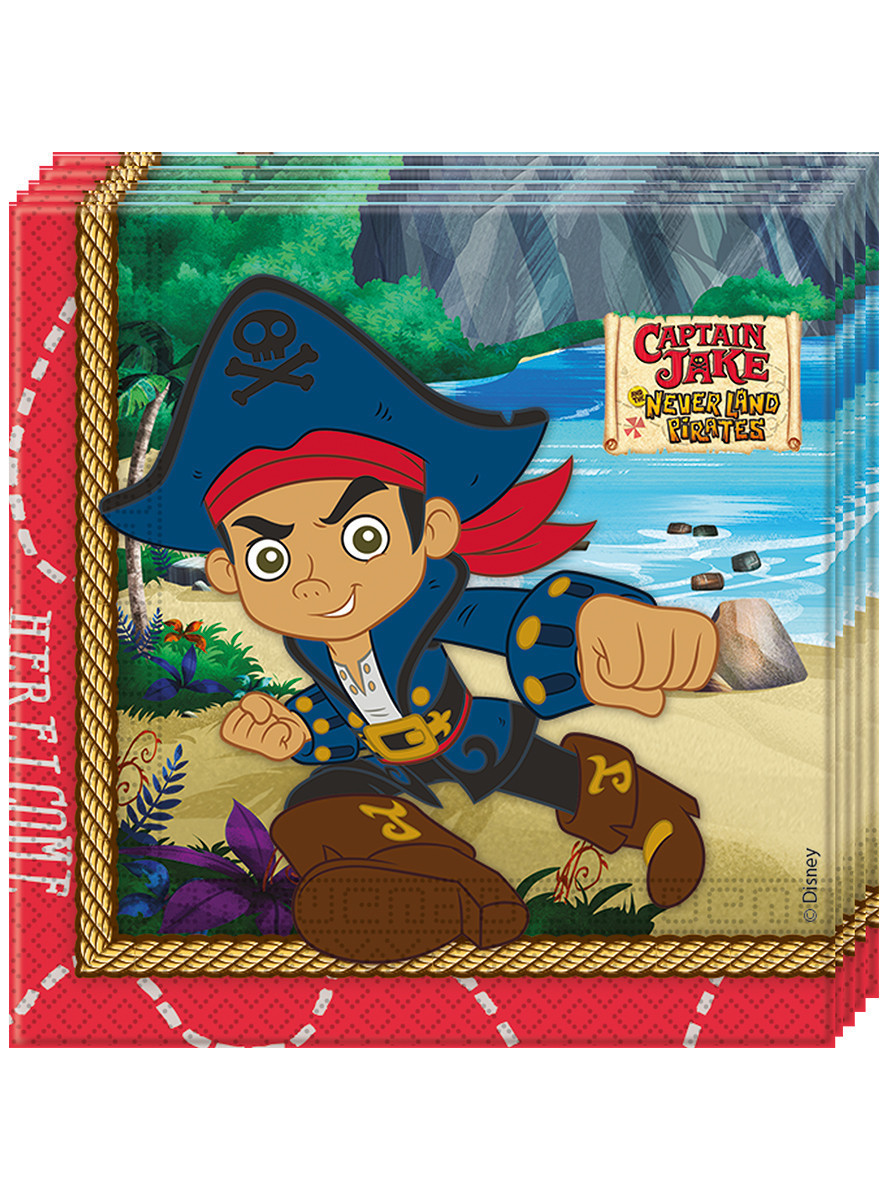 Embalagem com 20 guardanapos para festas de aniversário com o tema Capitão Pirata Jake.