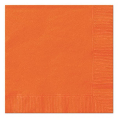 Pack de 20 guardanapos pequenos em papel e folha dupla na cor Laranja.Existem pratos e copos da mesma colecção.Dimensões: 25x25cm.
