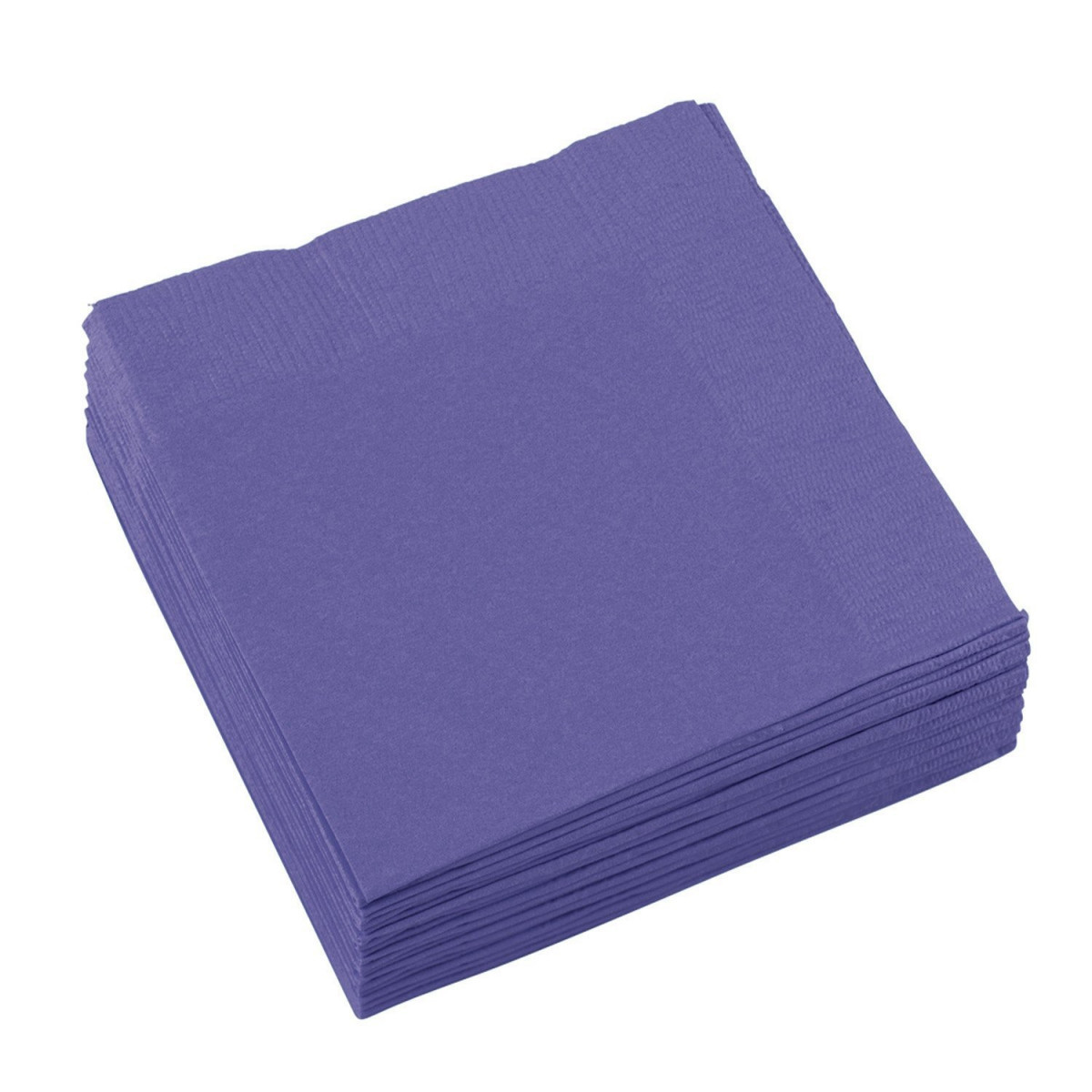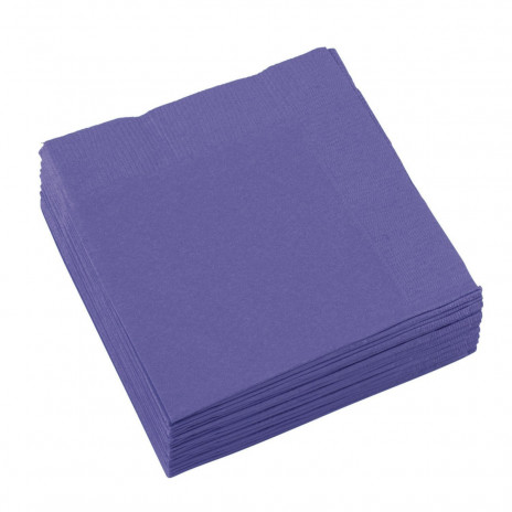 Pack de 20 guardanapos pequenos em papel com folha dupla na cor roxa.