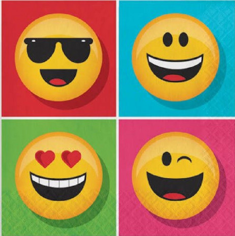 Pack com 16 guardanapos com o tema Emoji que tornam a tua festa de aniversário num autêntico sucesso.