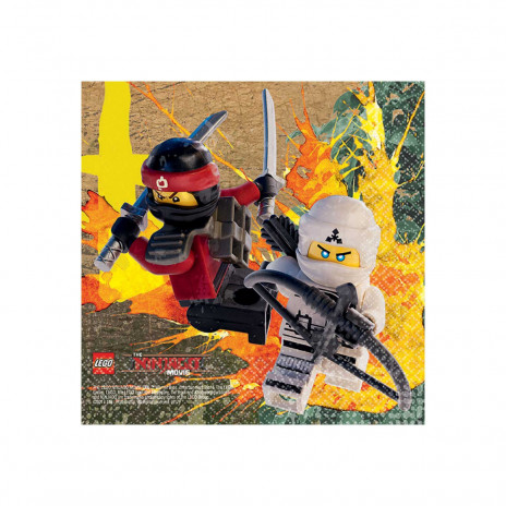 Guardanapos cocktail de folha dupla do Ninjago da Lego. Ideal para decorar uma festa de aniversário super animada e colorida. Dimensão: 25x25cm.